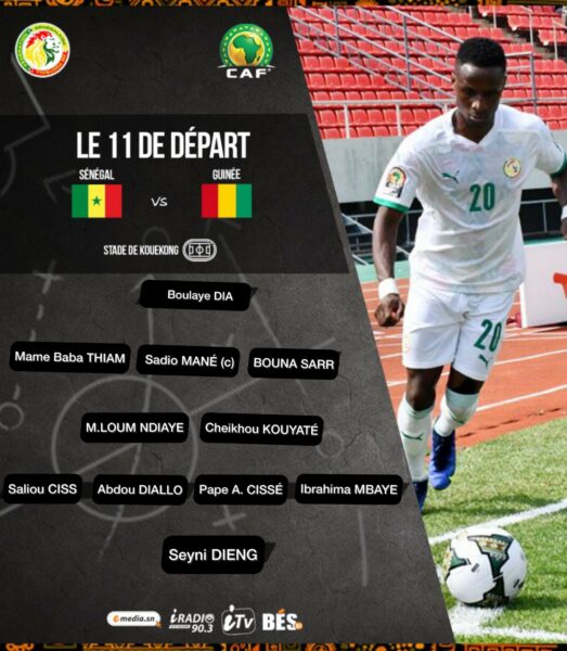Mame Bamba Thiam est ainsi incorporé dans la nouvelle équipe partante. Toujours sous le système 4-2-3-1, Loum Ndiaye prend la place du Parisien Gana Gueye dans l’entrejeu au coté de Cheikhou Kouyaté. Au niveau de la défense, Ibrahima Mbaye est aligné au poste de latéral droit en remplacement à Bouna Sarr qui partage les couloirs avec Thiam.