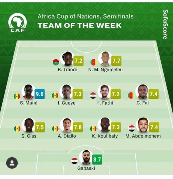 L’on a assisté à deux grandes demi finales. Le premier entre le Burkina Faso et le Sénégal a été forte en intensité et le deuxième entre le Cameroun et l’Egypte a été beaucoup plus tactique. Lors de ces deux rencontres, plusieurs joueurs se sont illustrés. Avec une notre de 9, Sadio Mané est le meilleur joueur du dernier carré selon Sofa Score. Ce site spécialisé a d’ailleurs dévoilé son équipe type.
