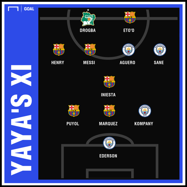 Passé notamment par le Barça et Man City, Yaya a préféré composé ce onze avec uniquement ses anciens coéquipiers. Il a opté pour un système audacieux de 3-1-4-2 qui comporte six attaquants.