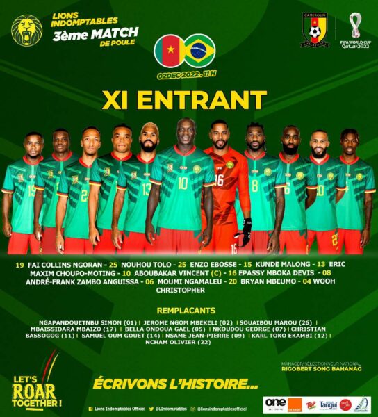 Après le Sénégal, la Tunisie, et la Ghana, au tour du Cameroun de jouer sa finale en phase de poules de la Coupe du monde 2022. Les Lions Indomptables défie les Brésiliens, déjà qualifiés pour les huitième de finales, avec la volonté de créer l’exploit et passer le premier tour.