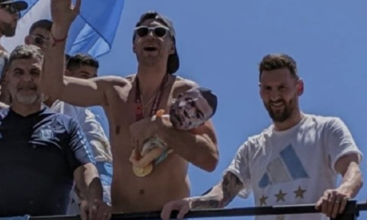 Le gardien de but de l’Argentine, Emi Martinez, a pris d’assaut la parade de la Coupe du monde de son pays mardi en portant une poupée avec le visage de Kylian Mbappe.