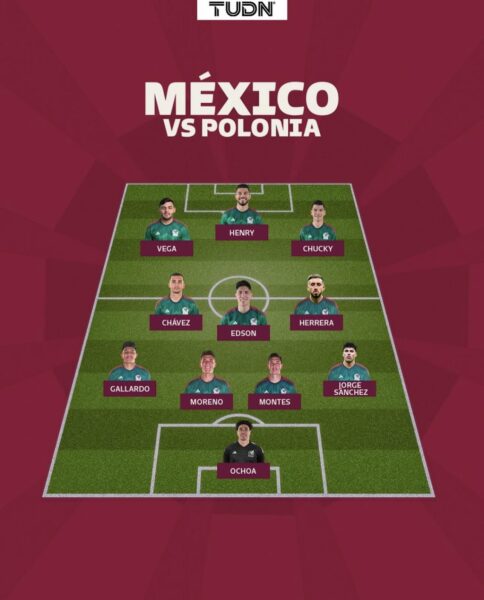 Mexique : Ochoa – Sánchez, Montes, Héctor Moreno, Gallardo – Héctor Herrera, Edson Álvarez, Chávez – Lozano, Henry Martin, Vega.