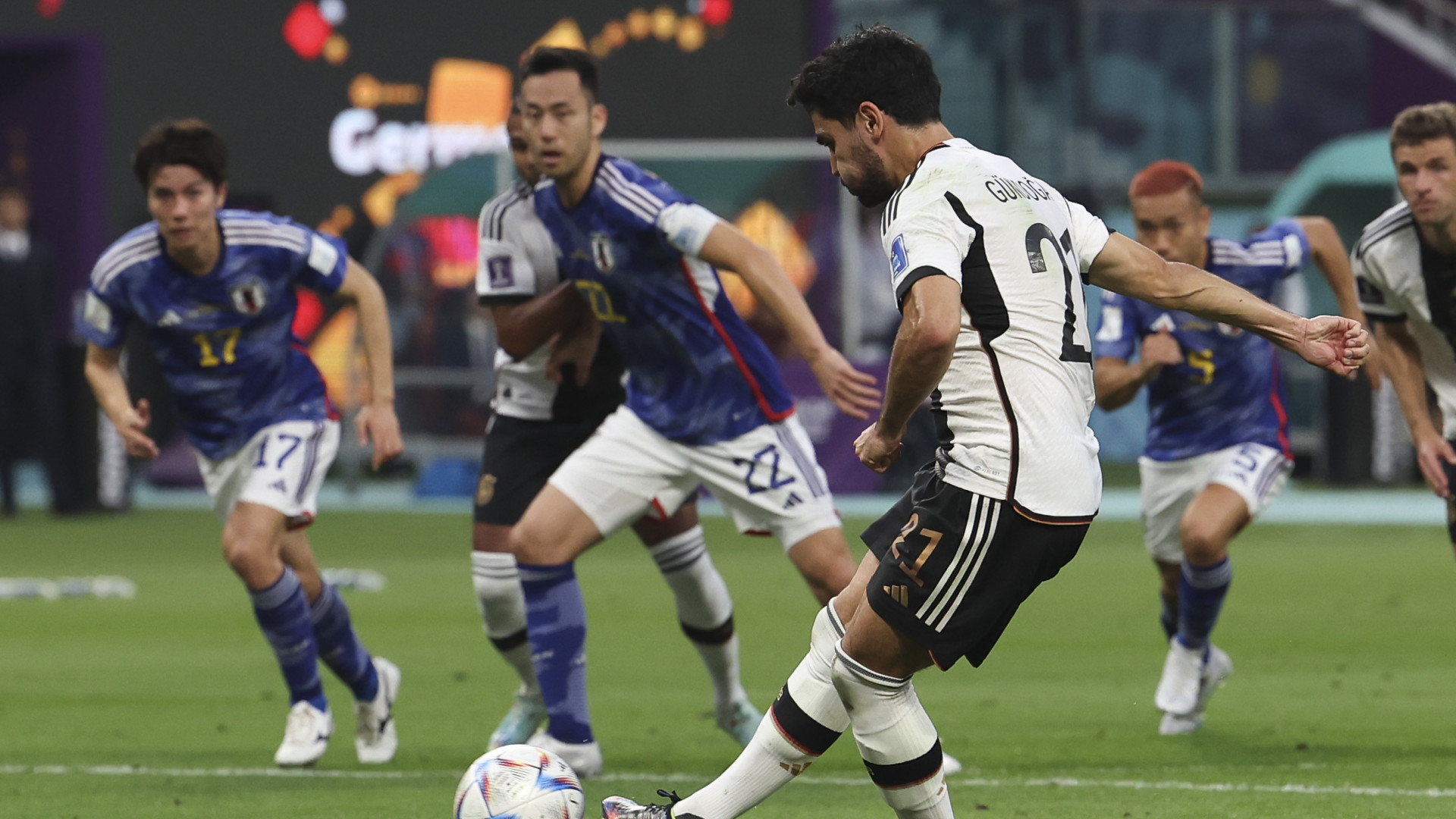 Le premier but du match qui a eu lieu à Doha, au Qatar, a même été marqué par l’équipe japonaise. L’ancien attaquant du Marítimo, Daizen Maeda, met le ballon au fond des filets allemands, mais l’arbitre annule le but de l’attaquant du Celtic pour hors-jeu. Les Allemands ont ensuite ouvert le score sur penalty. Shuichi Gonda a fait tomber un de ses adversaires dans la surface de réparation et le penalty a été accordé. Ilkay Gundogan ne tremble pas.