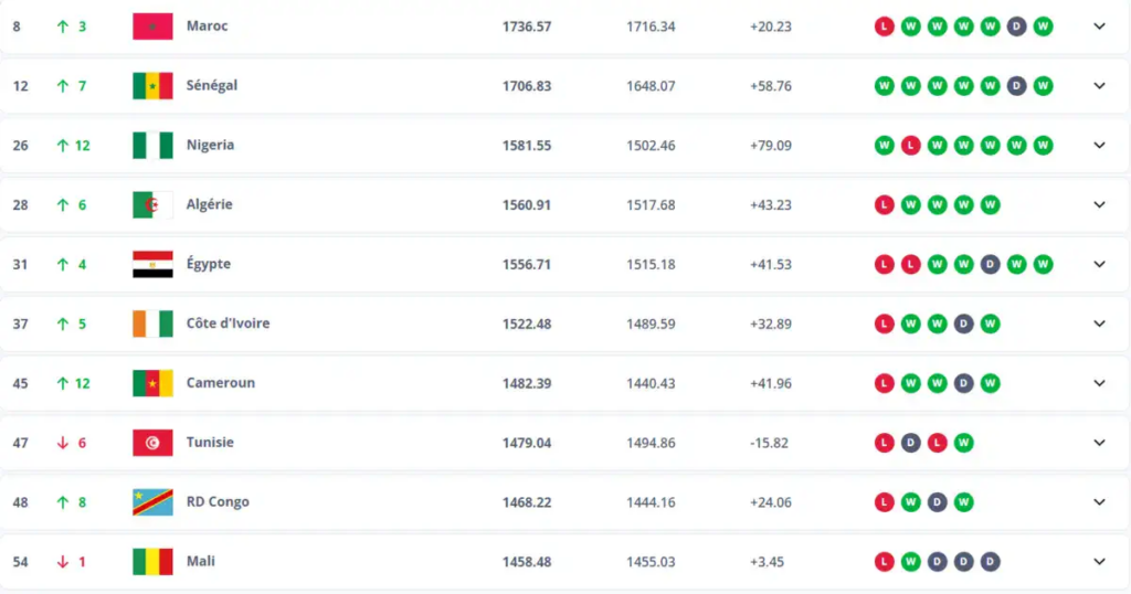 Gracias a su impresionante recorrido en la CAN 2025, Nigeria también avanza significativamente, ocupando ahora el 26º lugar mundial con 1,581.55 puntos, un salto de doce posiciones respecto al ranking anterior, donde estaba en el 38º puesto.