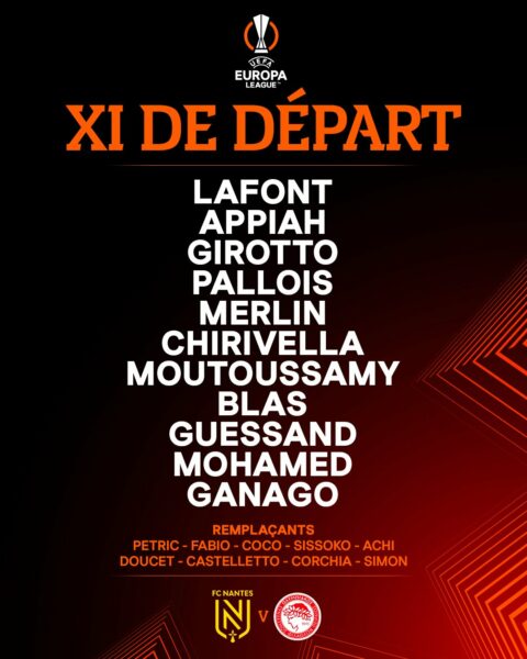 Cette année, Nantes jouera l’Europa League et va débuter sa campagne face aux grecs de l’Olympiacos. Pour ce match, les deux équipes viennent de publier leur composition. Marcelo, arrivé libre du Real Madrid, n’est pas présent dans le groupe.