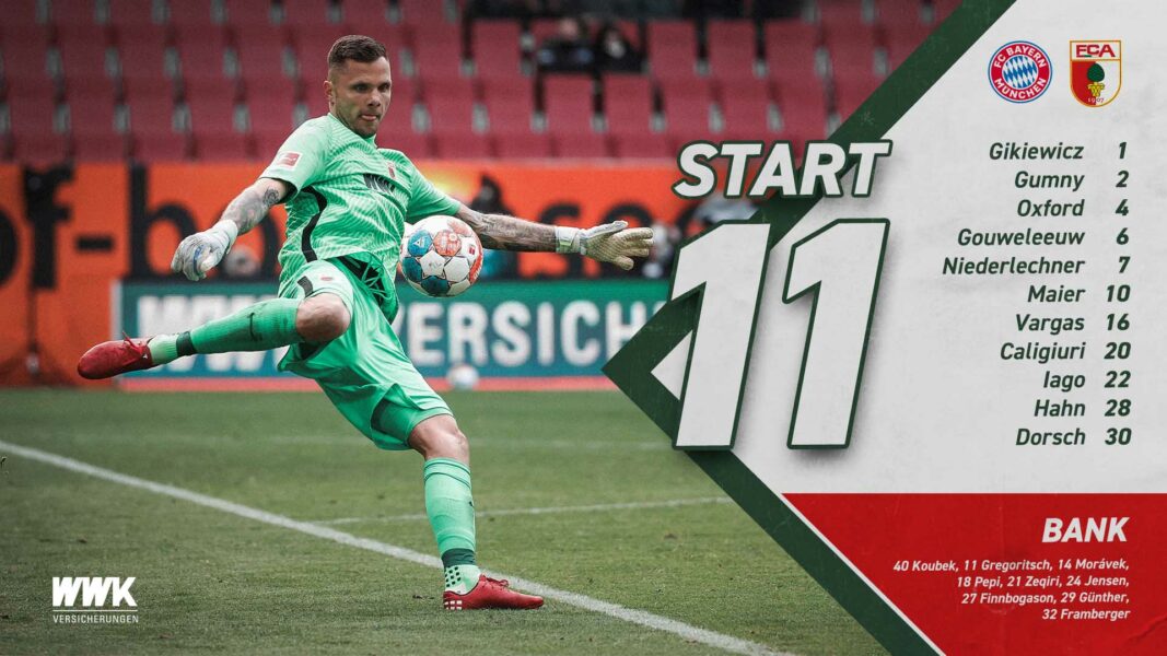 Augsbourg : Gikiewicz, Oxford, Gummy, Gouweleeuw, Iago, Dorsch, Maier, Caligiuri, Hahn, Vargas, Niederlechner