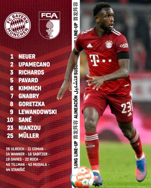 Bayern : Neuer, Pavard, Nianzou, Upamecano, Richards, Kimmich, Goretzka, Gnabry, Müller, Sané, Lewandowski