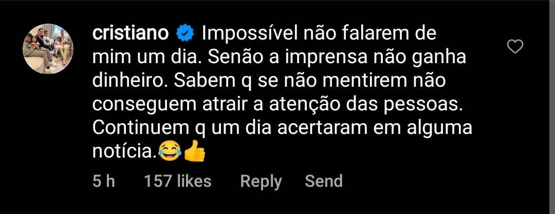 Ne se contenant plus, CR7 a brisé le silence en commentant l’un des postes d’un fan sur Instagram pour publiquement recadrer les journalistes.