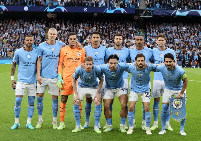 Les matches de l’UEFA donnent lieu à une photo d’équipe obligatoire avant le match. Haaland se tient généralement à côté d’Ederson, le gardien de but de City