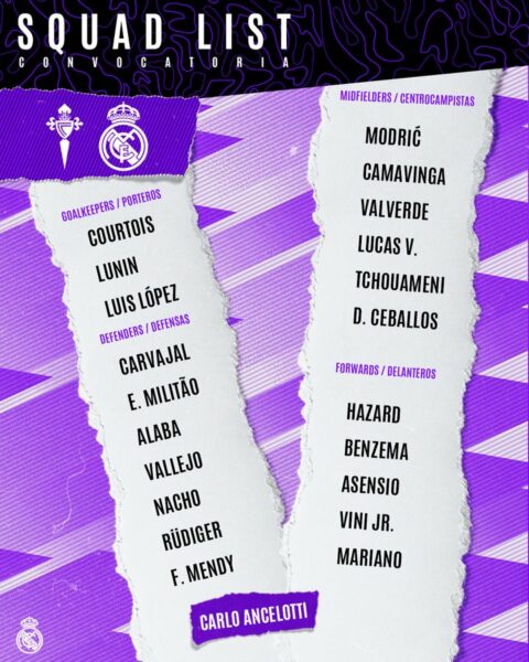 Il y a quelques minutes, le Real Madrid a dévoilé la liste officielle des joueurs retenus pour le match de la 2è journée de la Liga contre le Celta Vigo. Sans surprise, Casemiro, en partance vers Manchester United, n’est pas retenu.