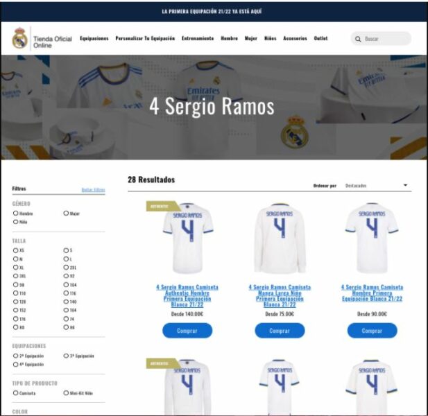 Le chiffre ‘4’ reste la propriété de Sergio Ramos sur internet. Le site officiel du Real Madrid n’a pas encore mis à jour la liste des joueurs et continue de gagner de l’argent pour la vente du maillot du défenseur central.