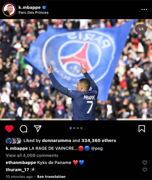 Auteur d’un masterclass face à Lille ce dimanche, Mbappé a balancé du lourd sur Instagram.