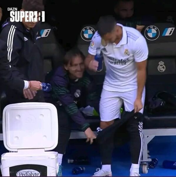 Mais avant de refouler la pelouse du Bernabèu, Hazard a été vite aidé par son coéquipier Luka Modric. Le milieu croate très excité pour le Belge l’a aidé à se mettre en maillot. Un geste qu’apprécie le monde du foot.