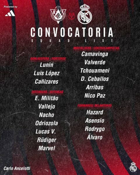 Le Real Madrid joue les 16e de finale demain en Coupe du Roi. Ce sera face à Cacereño. Alors que les madrilènes ont fait bonne sensation en battant Valladolid vendredi lors de la reprise de la Liga (0-2), Ancelotti a décidé de se priver de plusieurs cadres. Il s’agit des géants comme Benzema, Modrić, Kroos, Alaba, Mendy, Courtois, Carvajal, Vinicius, Mariano.