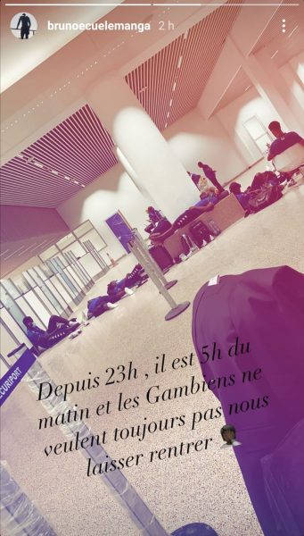 En effet, la direction de la police des Airs et des frontières gambienne n’accepte pas les tests covid-19 venant de l’Afrique Centrale. Face à cette situation, la Fédération gabonaise aurait demandé à la police gambienne d’effectuer eux-mêmes les tests sur les joueurs. Depuis 23h jusqu’à maintenant, aucun test n’a été effectué, ce qui oblige les Panthères à dormir à même le sol.