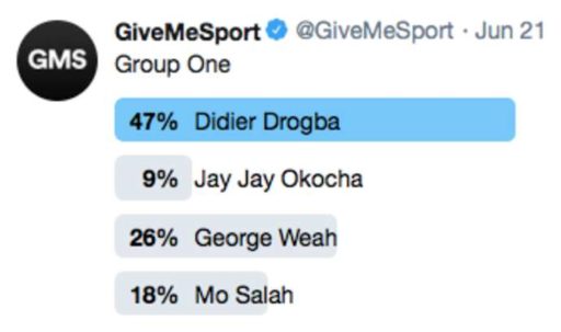 Après France Football qui a élu George Weah meilleur footballeur africain de tous devant Samuel Eto’o, Roger Milla et Didier Drogba. C’est la légende ivoirienne qui a cette fois-ci récolté le plus de votes dans un sondage réalisé par le Magazine Anglais Give Me Sport (GMS).