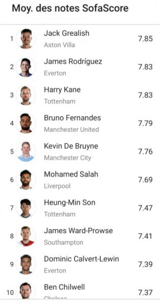 D’ailleurs, les deux, qui étaient nominés pour le titre de meilleur joueur de la Premier League la saison dernière, ne sont pas présents dans le classement de Sofascore des meilleurs joueurs avant le Boxing day (le 26 décembre). Ce classement est dominé par le joueur d’Aston Villa, Jack Grealish, qui réalise une très belle année. Il est suivi par James Rodriguez, lui aussi auteur d’un bon début de saison avec les Toffees. Le seul africain sur ce classement est Mo Salah. Il est placé à la 6e place.