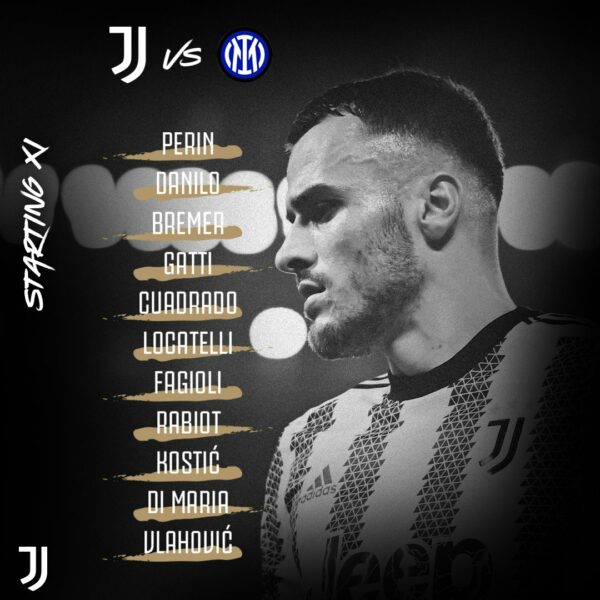 Juventus : Perin ; Gatti, Bremer, Danilo ; Cuadrado, Fagioli, Locatelli, Rabiot, Kostic ; Di Maria; Vlahovic