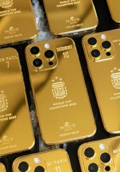 Les iPhones, fabriqués sur mesure par l’entrepreneur Ben Lyons, présentent le nom du joueur, le numéro de l’équipe et le logo de l’Albiceleste, décoré de trois étoiles pour représenter les trois titres de Coupe du Monde remportés par l’équipe nationale argentine. Lyons est le fondateur et propriétaire de IDESIGN GOLD, une entreprise spécialisée dans la personnalisation de produits de luxe pour les célébrités et les athlètes.