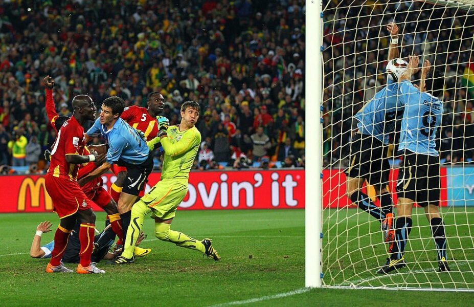 Le Ghana affronte l’Uruguay de Luis Suarez et d’Edinson Cavani en quart de finale. Avec un parcours exceptionnel dans cette coupe du monde, la Céleste est favori devant le Ghana. Mais sur le terrain, une autre réalité que les fans de football vont assister. Le Ghana amené par Gyan et Souley Mountari, font tenir tête à la bande de Diego Forlan et compagnie. Dans une rencontre de haute intensité, c’est le Ghana qui va ouvrir le score par Souley Mountari juste avant la pause d’une lointaine frappe dans l’entre jeu. De retour aux vestiaires, Diego Forlan va égaliser pour l’Uruguay sur un coup-franc direct à la 55e minute. C’est le score du match entre les deux équipes. A la 120 minute, il va se passer un événement qui va marquer cette rencontre dans l’histoire de la coupe du monde.