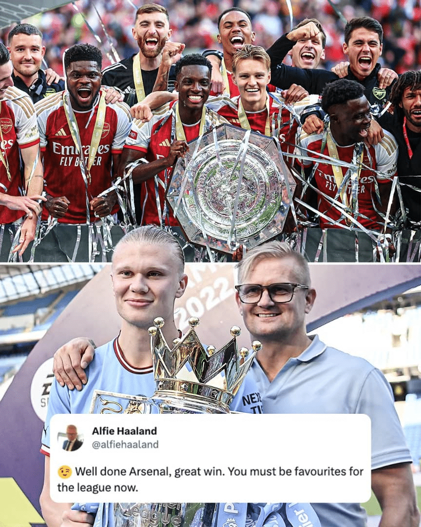 « Je ne pense pas qu’il puisse y avoir beaucoup de sensations meilleures que celle de remporter un trophée contre la meilleure équipe du monde. Surtout de la façon dont nous l’avons fait. C’est très encourageant. Nous avons montré de la résilience et de la détermination pour finalement remporter ce match. », s’est félicité Arteta, coach des Gunners après la victoire. De son côté, Pep Guardiola tentait de relativiser la défaite. « Nous sommes encore en préparation, et même si nous avons a une bonne équipe, parfois il faut accepter de perdre des compétitions ou des matches, relativise le coach de City. Je n’ai rien à dire d’exceptionnel, comme je le ferais s’il y avait un problème. Nous sommes venus ici pour gagner et nous sommes bien sûr déçus car nous étions très proches de la victoire, à 1 ou 2 minutes près. », a-t-il confié. Néanmoins, il a un avertissement de la part de Alfie Haaland père de son numéro 9. « Bien joué Arsenal, belle victoire. Vous êtes maintenant favori pour remporter le championnat », a écrit le Norvégien sur les réseaux sociaux. Les Sky Blues sont avertis.