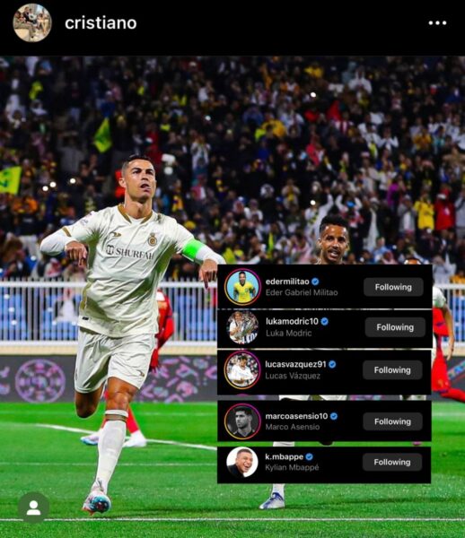 Et les grandes stars n’ont pas manqué de réagir. A l’image de Mbappe, Modric, Militao, Vazquez et Asensio qui ont aimé la photo de CR7 sur Instagram pour se réjouir de son 62e triplé en carrière.