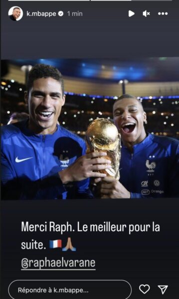 Âgé seulement de 29 ans, Raphaël Varane a pris sa retraite internationale et laisse ainsi les Bleus après Hugo Lloris, Mandanda et Karim Benzema. Une décision qui n’a pas tardé à faire réagir son entraîneur Didier Deschamps, mais aussi son coéquipier Kylian Mbappé.