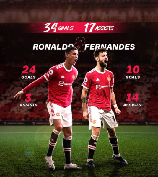 8 – Cristiano Ronaldo et Bruno Fernandes (impliqués sur 51 buts)