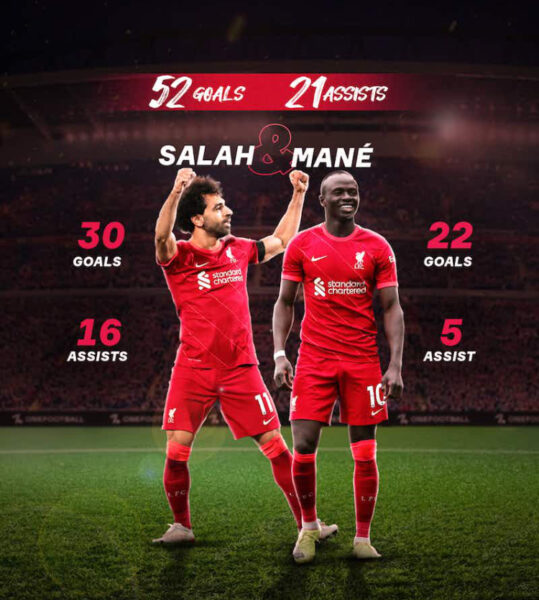 4 – Mohamed Salah et Sadio Mané (73 buts)