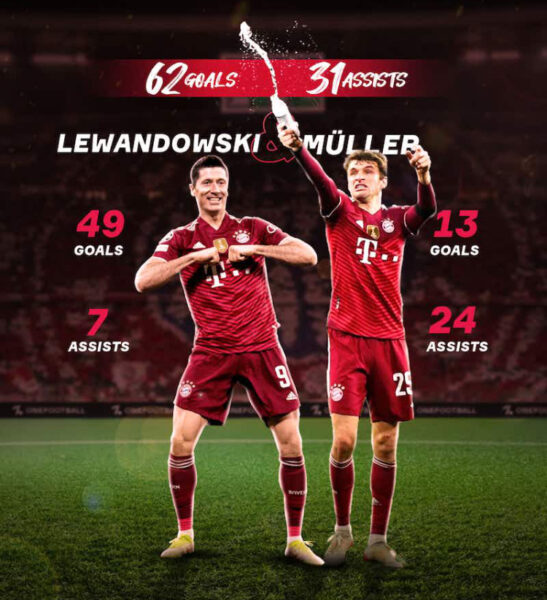 2 – Robert Lewandowski et Thomas Muller (93 buts)