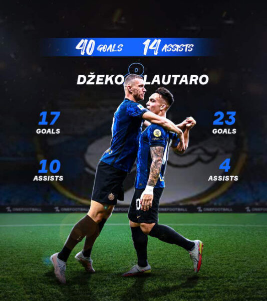 7 – Edin Dzeko et Lautaro Martinez (54 buts)