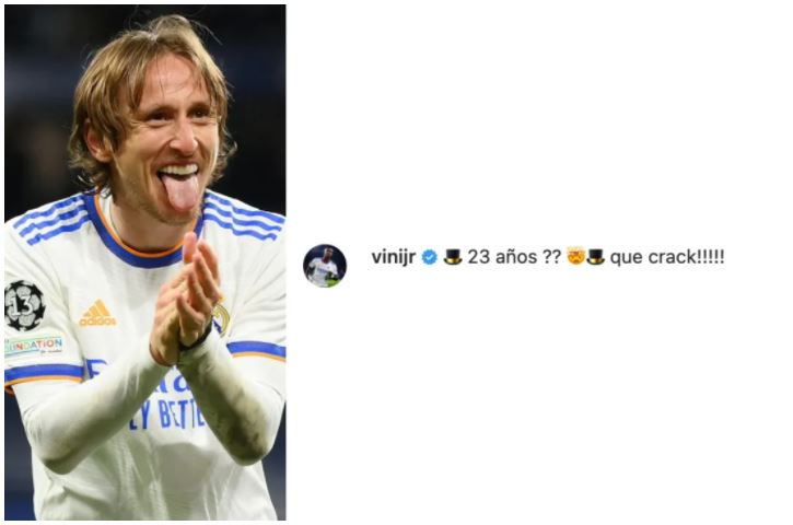 Au lendemain de la remontée épique contre le Paris Saint-Germain en Ligue des champions, le magicien croate a partagé, sur son compte Instagram officiel, plusieurs images de ce qui s’est passé à Santiago Bernabéu avec le message suivant : «Quelle nuit. C’est comme ça que le Real Madrid gagne. Merci Bernabéu». Et Vinicius Jr, a rapidement commenté. L’auriverde a non seulement mis des émojis magiciens, mais a voulu demander à son partenaire s’il n’est vraiment pas encore un jeune : «Tu as 23 ans ?? Quel crack!!!», a demandé Vini. Un message qui est devenu très viral sur Twitter.