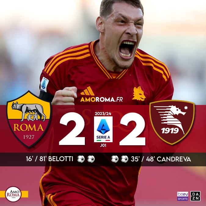Pour la première journée de Serie A, l’AS Roma recevait la Salternitana. Le début de match était dominé par les hommes de José Mourinho, qui allaient logiquement être récompensés par l’ouverture du score d’Andrea Belotti (17e). Dominateurs, les Romains ne parvenaient pas à faire le break.