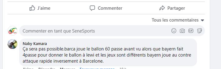 «L’animation offensive du Bayern et du Barca n’est pas la même , le Bayern se crée d’occasion toute les 3mn, du coup Lewandoski a plein de ball dans la surface.. À moins mon avis il va galérer un peu au Barça»