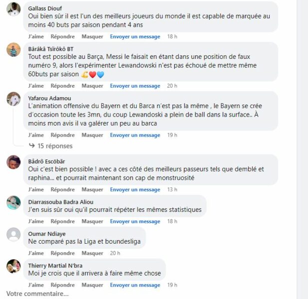 «Lorsque tu as (au Bayern) des joueurs autour de toi qui font la différence (Sané, Coman) mais qui ne savent pas cadrer une frappe à 80% c’est normal que Robert Lewandowski sera toujours là pour mettre au fond le travail inachevé de ces joueurs possédant de grosse capacité»
