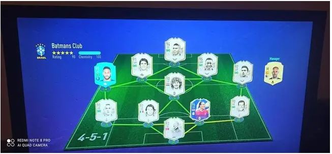 Neymar n’a épargné aucune dépense avec son Ultimate Team, qui comprend neuf « icônes ». Il joue avec une formation 4-5-1 et choisit le légendaire Peter Schmeichel dans les buts. L’icône de l’AC Milan, Paolo Maldini (note de 92), forme un duo avec Virgil van Dijk (note de 96) dans l’axe. La légende brésilienne Roberto Carlos (note de 91) est son latéral gauche et à droite, il opte pour une autre légende de son pays, l’icône de Santos Carlos Alberto Torres (note de 90).
