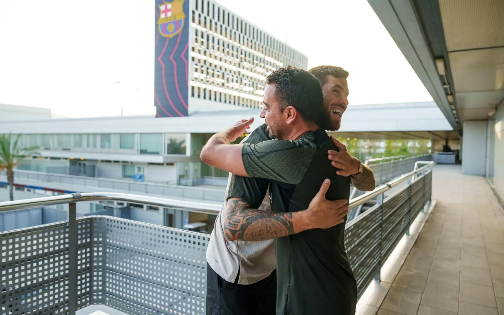 Xavi a accueilli le nouveau défenseur central, Iñigo Martínez, en le serrant dans ses bras avant la première séance d’entraînement de la pré-saison avec le groupe.
