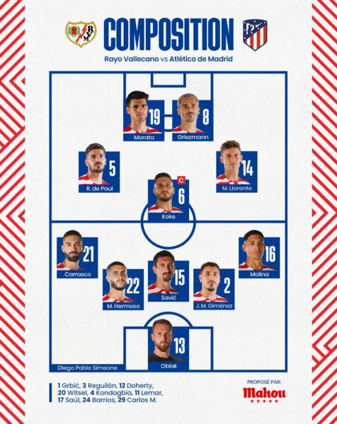 Avec une avantage de trois sur son poursuivant la Real Sociedad, l’Atletico Madrid se déplace sur la pelouse du Rayo Vallecano avec la volonté de conforter son avantage au classement de la Liga.
