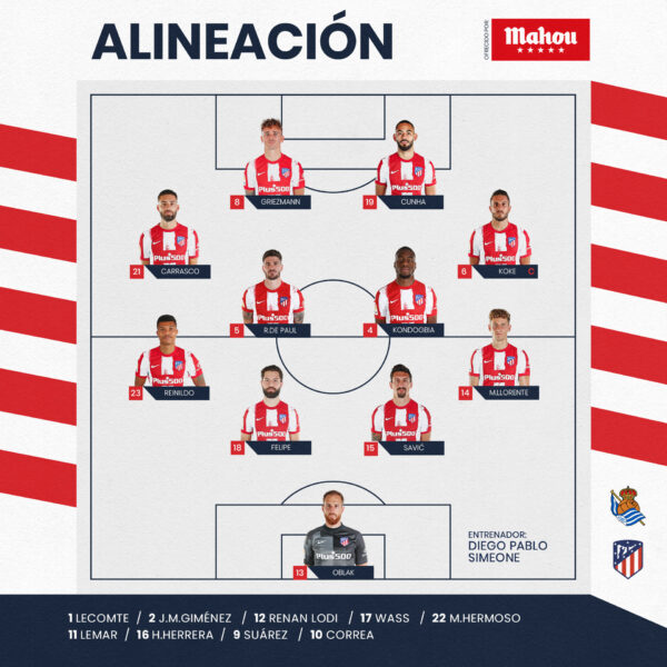 Déjà assurés de disputer respectivement la Ligue Europa et la Ligue des Champions, la Real Sociedad et l’Atletico Madrid se retrouvent ce dimanche soir à Anoeta pour le compte de la dernière journée de Liga espagnole.