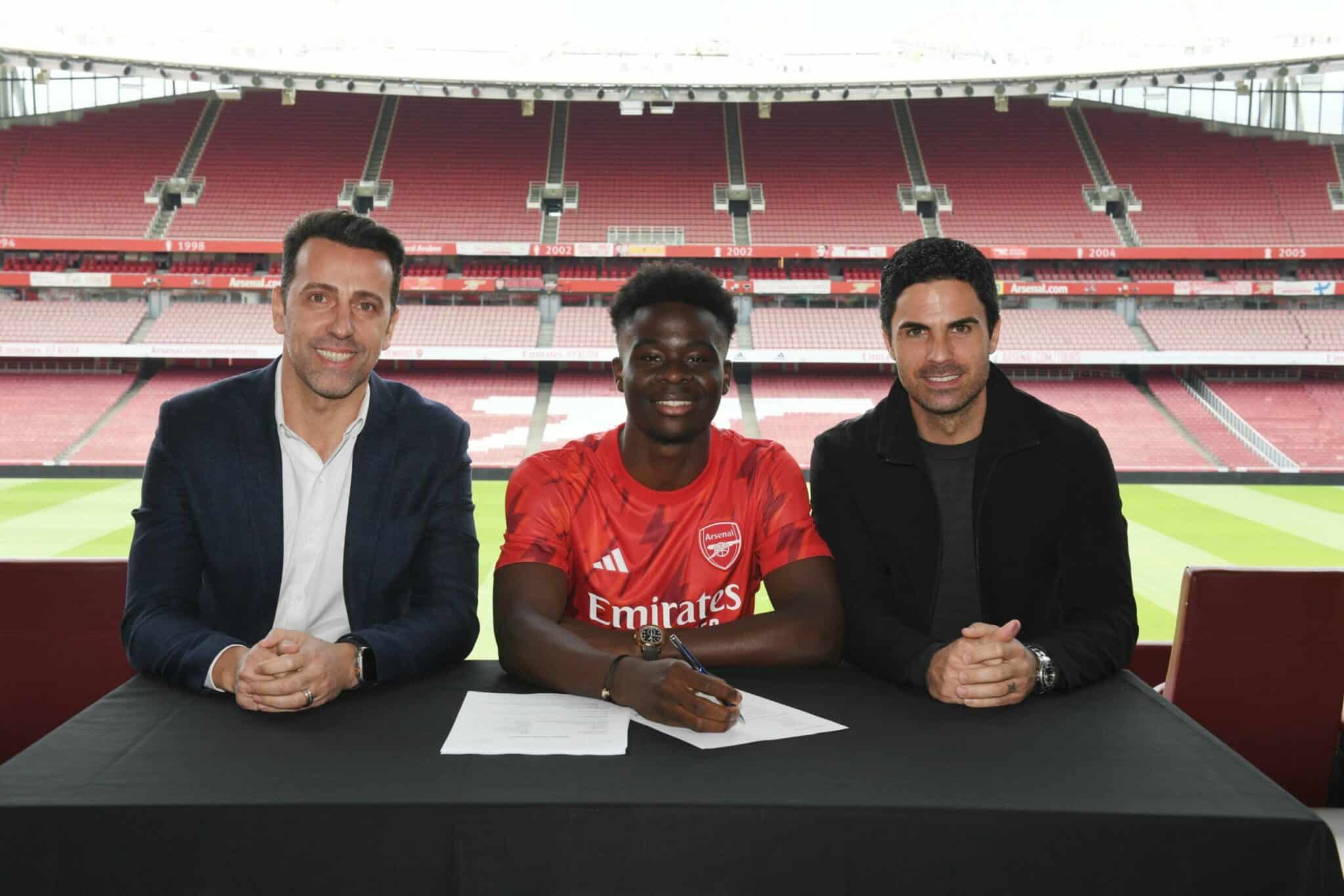 Bukayo Saka a récemment sécurisé son avenir à Arsenal en prolongeant son contrat jusqu’en 2027. Cette nouvelle a été dévoilée par l’Athletic en février dernier, révélant ainsi que le jeune prodige du football anglais et le club londonien étaient parvenus à un accord de principe. Le précédent contrat de l’international anglais arrivait à échéance l’été prochain, mais il est désormais lié à Arsenal jusqu’en 2027, avec un accord financier d’une valeur estimée à environ 15 millions de livres sterling par an.