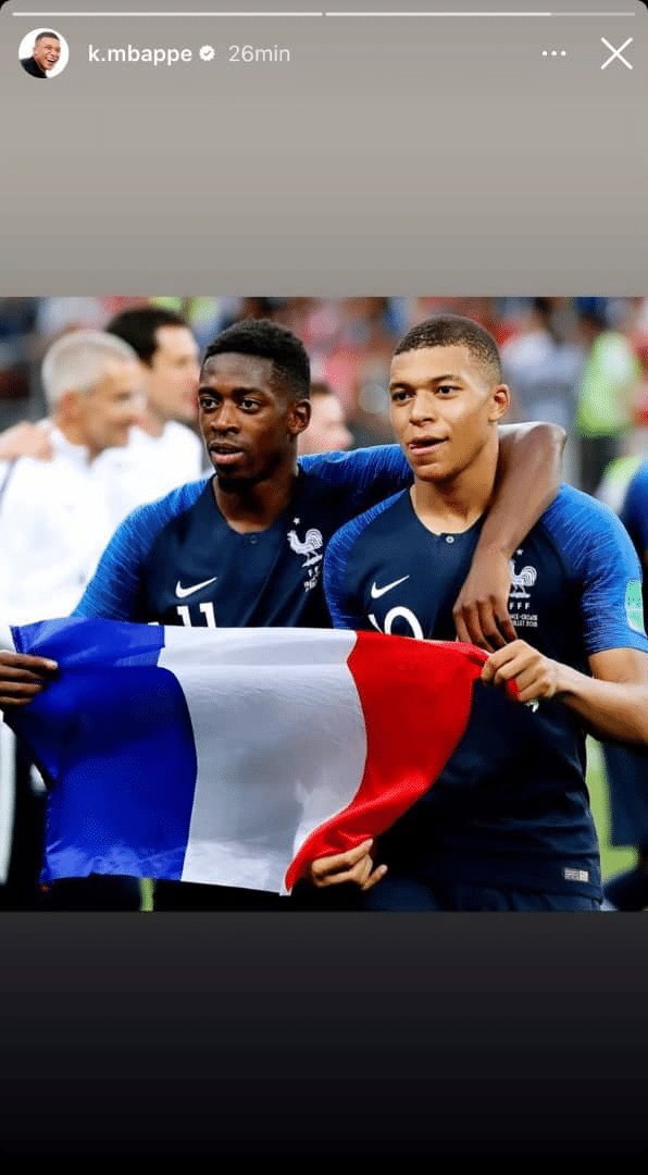 Quelques minutes après l’officialisation de la signature d’Ousmane Dembélé au PSG, Kylian Mbappé a souhaité la bienvenue à son nouveau coéquipier. Sur Instagram et dans un message Mbappé laisse entendre qu’il a bien l’intention de jouer avec son copain à Paris cette saison. « Bienvenue chez toi mon frère. Trop heureux de te voir ici. L’aventure commence. », a écrit le capitaine de l’équipe de France. Mais ce dernier va falloir satisfaire Nasser Al Khelaïfi avant de songer jouer aux côtés de Dembélé.